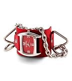 BestPrice Ladies Red Leather Silver Tone Chain Quartz Wristwatch