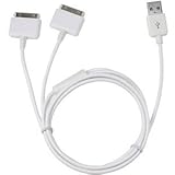 This 2-in-1 Dual iPod/iPhone charger is perfect for families, roommates, Apple enthusiasts, and more! Use one cable to charge two iPhone or iPods at once. Save space and stay organized with this great accessory. iPod / iPhone dual 2-in-1 USB Cable Charge up to 2 iPod and/or iPhones at once (Sync one) USB 2.0 High Quality Cable Charge 2 devices using your existing wall or car charger 2 Year Warranty