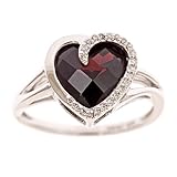 Save On Sterling Silver Checkerboard Garnet Heart Diamond Ring (1/14 cttw, J-K Color, I2-I3 Clarity), Size