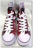 These classic high top style shoes are identical to the red-black-and-white striped design worn by Eddie onstage for over a decade. Previously unavailable to the public until now, these shoes have a canvas upper and a rubber sole with the EVH logo on the bottom. Proper Sizing, a Must-Read:EVH shoes run true to size to standard athletic shoes, so order the same size as your regular sneakers. Compared to Converse Chuck Taylors, EVH shoes are a half-size smaller, so order a half-size up from your Converse shoes. (Example: If you normally wear Converse Size 10, order EVH Size 10.5) Men's 7-13(US Sizes)