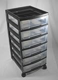 This Iris 6 Drawer Plastic Chest with Compartment Top is a perfect way to help organize the home or office! Featuring rolling casters for easy mobility, this 6 drawer chest works wonders for storing school supplies, makeup, office supplies, scrapbook accessories or other small items. The top of this mini chest features small compartments allowing you to keep small accessories sorted and organized. With 6 small drawers and the divided top you can store a large array of belongings. Interior of Drawers: 3"H x 10"W x 12 3/4"D. Assembly level/degree of difficulty: No Assembly Required. Made in America Color: Black Size: 26.188"H x 12.125"W x 14.375"D 6 Drawers of Orgainzation Power! Durable construction! Easy to transport!